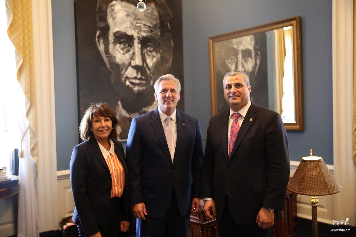 Kevin McCarthy and Ambassador Hovhannissian discussed the latest developments in US-Armenia bilateral relations, while singling out the cementing role of the Armenian-American community.