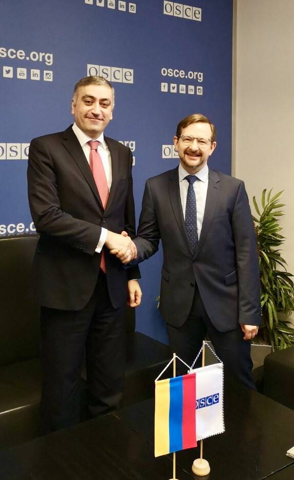 17 January, 2019On January 17, the Head of the Armenian Delegation to the OSCE Ambassador Armen Papikyan met with the OSCE Secretary General Thomas Greminger.