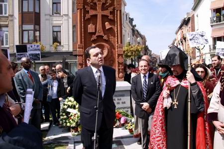 Բրյուսելի Սբ. Մարիամ Մագդաղենայի եկեղեցում հոգեհանգստի պատարագի մատուցումից հետո սգո երթը շարժվեց դեպի Հայոց եղեռնի հիշատակը հավերժացնող խաչքար: Բենելյուքսի երկրներում հայրապետական պատվիրակ Զատիկ վարդապետ Ավետիքյանի օրհնությամբ խաչքարի մոտ խունկ վառվեց, հնչեցվեց տերունական աղոթքը: Այնուհետեւ ելույթներ ունեցան Բելգիայում ՀՀ արտակարգ եւ լիազոր դեսպան Ավետ Ադոնցը եւ Բելգիահայերի կոմիտեի նախագահ Մ. Մամուրյանը: